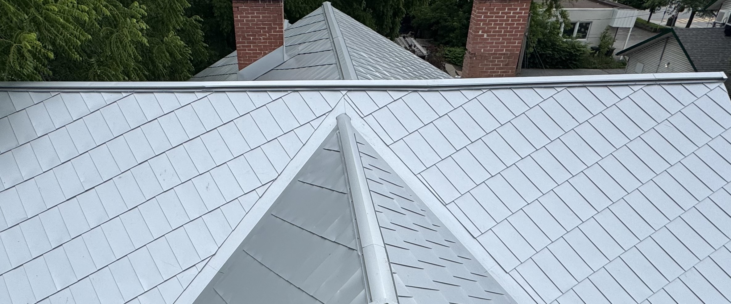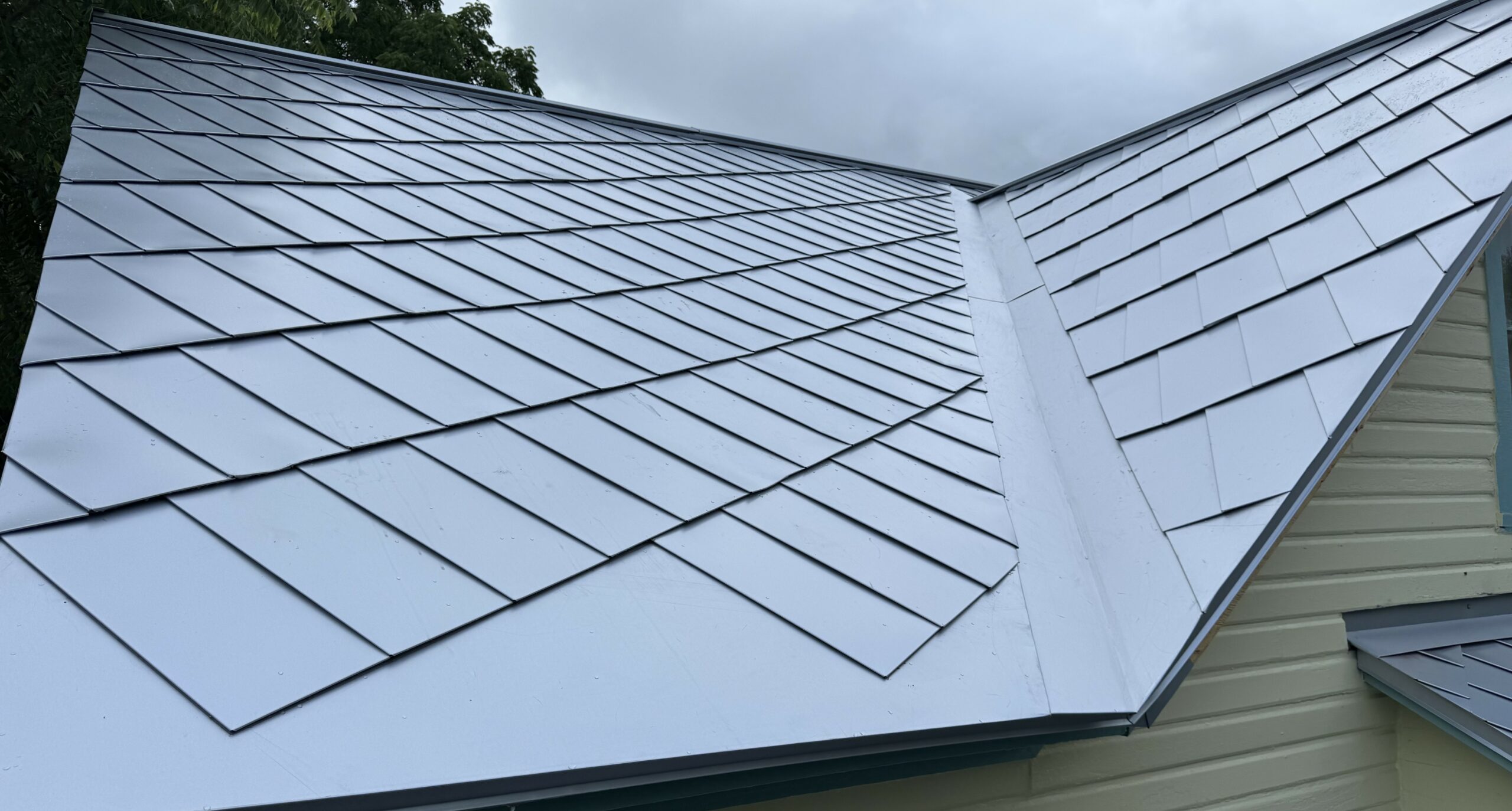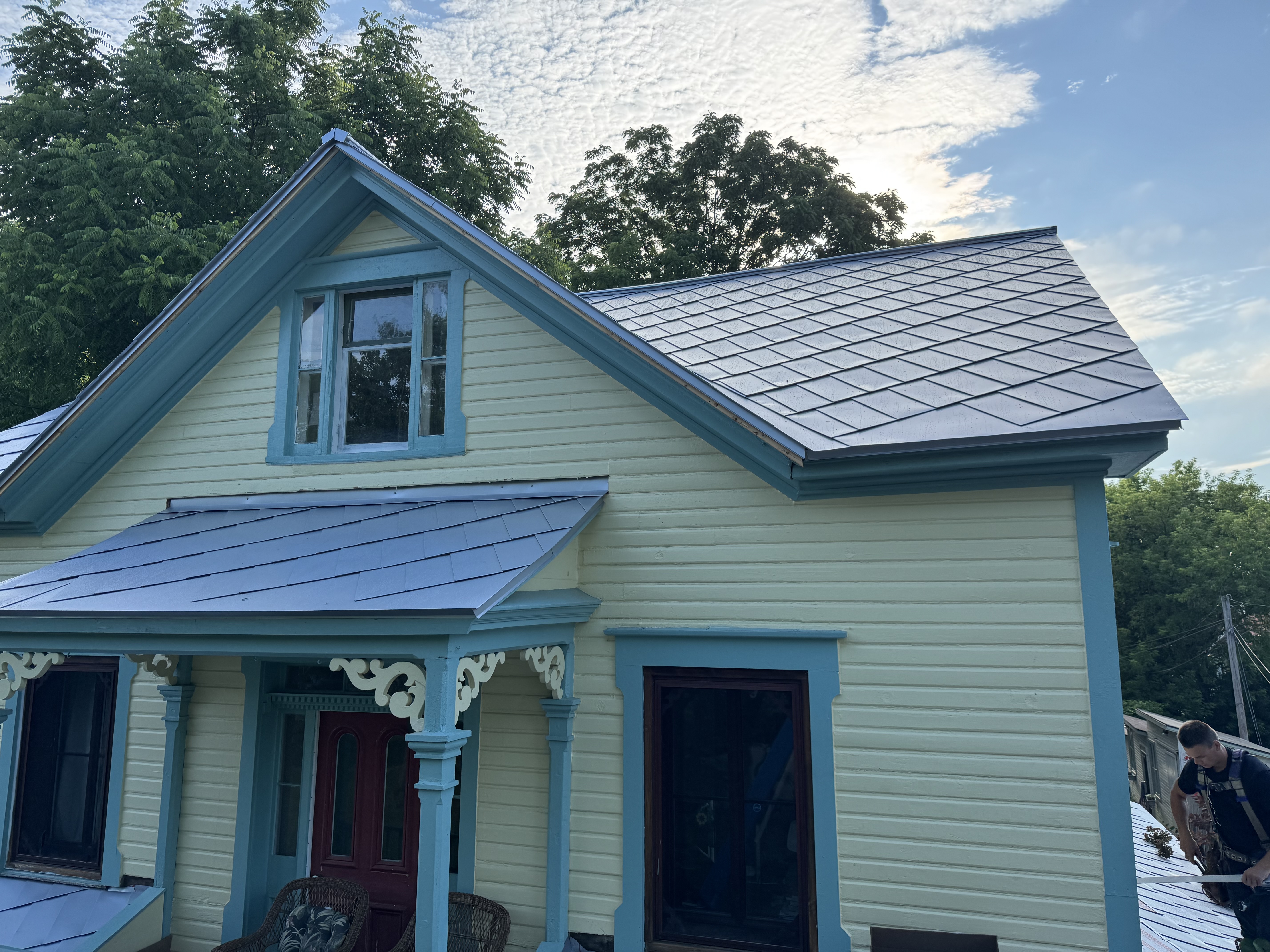 26 ga Canadian steel tile on the roof of the house of Edward Yeoman and Marisol Yeoman.